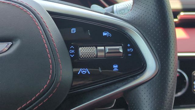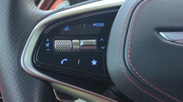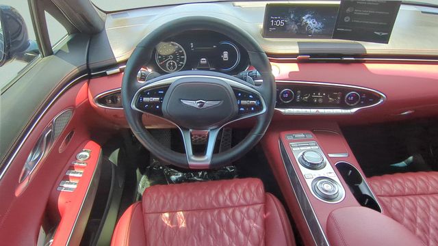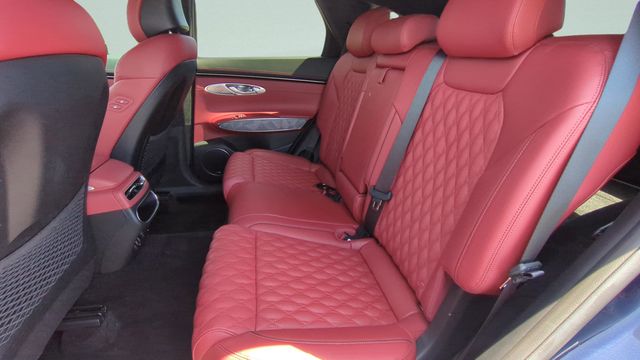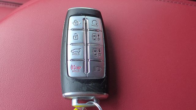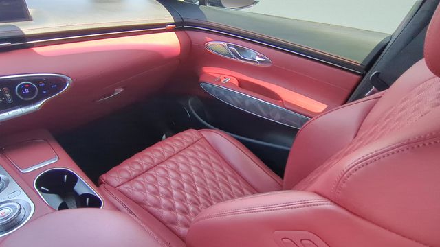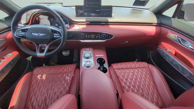 This vehicle comes equipped with Sport Advanced Package, Genesis Certified, 3.909 Axle Ratio, 4-Wheel Disc Brakes, 9 Speakers, ABS brakes, Adaptive suspension, Air Conditioning, Alloy wheels, AM/FM radio: SiriusXM, Android Auto & Apple CarPlay, Anti-whiplash front head restraints, Auto High-beam Headlights, Auto-dimming door mirrors, Auto-dimming Rear-View mirror, Automatic temperature control, Brake assist, Bumpers: body-color, Cargo Cover, Cargo Net, Cargo Tray, Delay-off headlights, Driver door bin, Driver vanity mirror, Dual front impact airbags, Dual front side impact airbags, Electronic Stability Control, Emergency communication system, Exterior Parking Camera Rear, First Aid Kit, Four wheel independent suspension, Front anti-roll bar, Front Bucket Seats, Front Center Armrest w/Storage, Front dual zone A/C, Front reading lights, Fully automatic headlights, Garage door transmitter: HomeLink, Heated & Ventilated Front Bucket Seats, Heated door mirrors, Heated front seats, Illuminated entry, Knee airbag, Leather Seating Surfaces w/Mesh Insert, Low tire pressure warning, Memory seat, Navigation System, Occupant sensing airbag, Outside temperature display, Overhead airbag, Overhead console, Panic alarm, Passenger door bin, Passenger vanity mirror, Power door mirrors, Power driver seat, Power Liftgate, Power moonroof, Power passenger seat, Power steering, Power windows, Radio: AM/FM/SiriusXM/HD Premium Audio System, Rain sensing wipers, Rear anti-roll bar, Rear Parking Sensors, Rear reading lights, Rear seat center armrest, Rear window defroster, Rear window wiper, Remote keyless entry, Security system, Speed control, Speed-sensing steering, Speed-Sensitive Wipers, Split folding rear seat, Spoiler, Steering wheel memory, Steering wheel mounted audio controls, Tachometer, Telescoping steering wheel, Tilt steering wheel, Traction control, Trip computer, Turn signal indicator mirrors, Variably intermittent wipers, Ventilated front seats, and Wheels: 19" Sport Dark Hyper Silver Aluminum .
