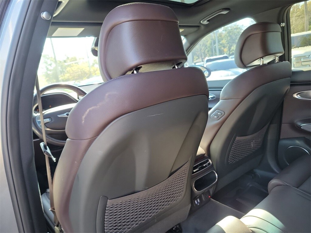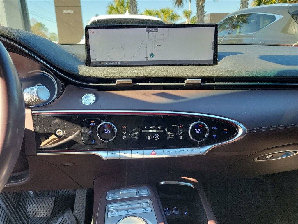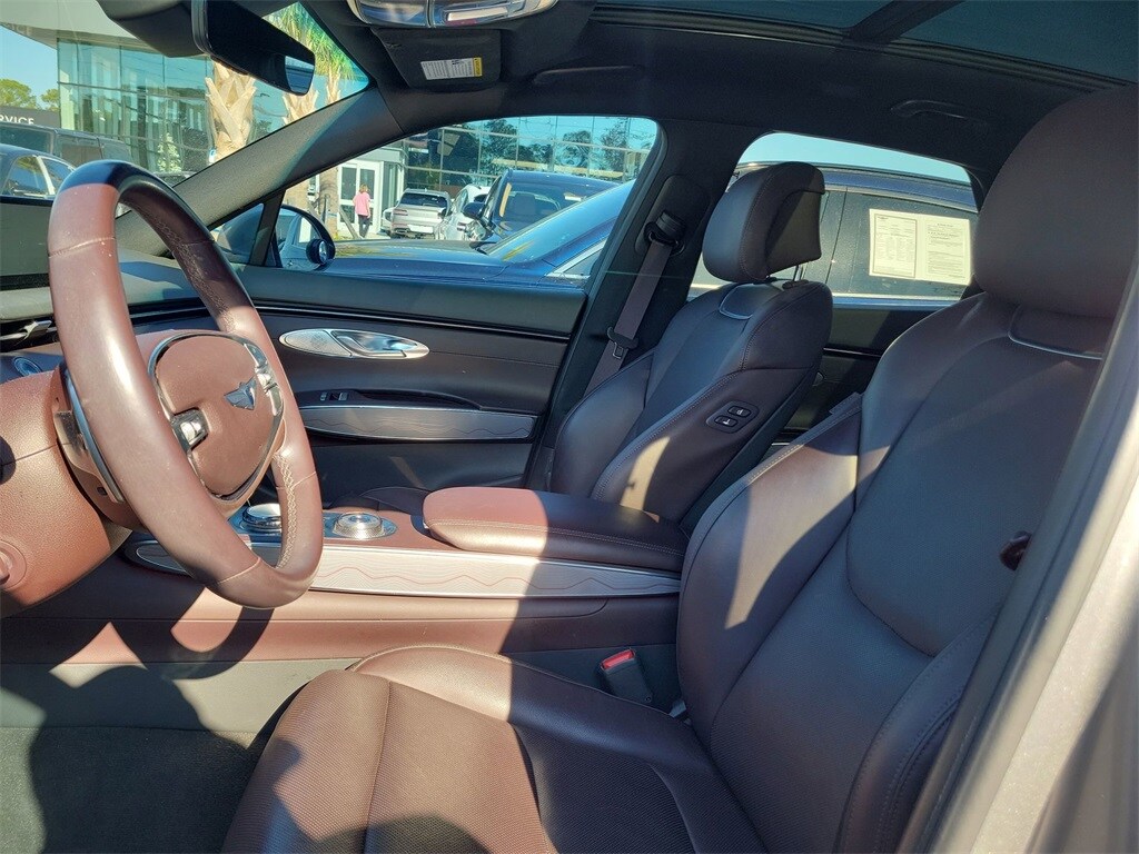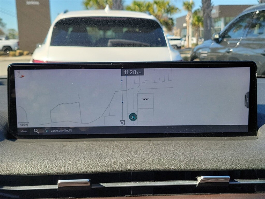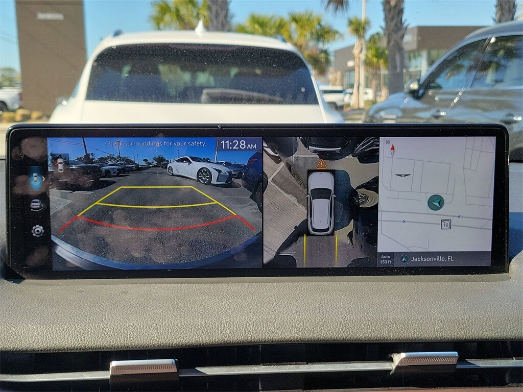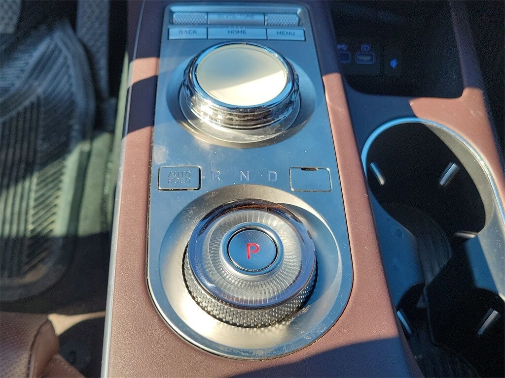 This vehicle comes equipped with Advanced Package (2nd Row 110V AC Power Outlet, 4-Way Power Lumbar Front Passenger Seat, Adjustable Interior Ambient Lighting, Advanced Rear Occupant Alert, Blind-Spot View Monitor, Forward/Reverse Parking Distance Warning, Heated Steering Wheel, Integrated Memory System (IMS), Passenger Walk-In Device, Power Folding ECM Mirrors w/Genesis Logo Lamp, Power Telescoping Steering Wheel, Power Tilt & Slide Panoramic Sunroof, Reverse Parking Collision-Avoidance Assist, and Surround View Monitor), 4-Wheel Disc Brakes, 4.181 Axle Ratio, 9 Speakers, ABS brakes, Air Conditioning, Alloy wheels, Aluminum Trim w/Spin Brushed Pattern, AM/FM radio: SiriusXM, Android Auto & Apple CarPlay, Anti-whiplash front head restraints, Auto High-beam Headlights, Auto-dimming Rear-View mirror, Automatic temperature control, Brake assist, Bumpers: body-color, Cargo Cover, Delay-off headlights, Driver door bin, Driver vanity mirror, Dual front impact airbags, Dual front side impact airbags, Electronic Stability Control, Emergency communication system: Genesis Connected Services, Exterior Parking Camera Rear, First Aid Kit, Four wheel independent suspension, Front & Rear Mudguards, Front anti-roll bar, Front Bucket Seats, Front Center Armrest w/Storage, Front dual zone A/C, Front reading lights, Fully automatic headlights, Garage door transmitter: HomeLink, Heated door mirrors, Heated Front Bucket Seats, Heated front seats, Illuminated entry, Knee airbag, Leather Seating Surfaces, Leatherette Seating Surfaces, Low tire pressure warning, Navigation System, Occupant sensing airbag, Outside temperature display, Overhead airbag, Overhead console, Panic alarm, Passenger door bin, Passenger vanity mirror, Power door mirrors, Power driver seat, Power Liftgate, Power passenger seat, Power steering, Power windows, Radio: 14.5" Navigation System w/AM/FM/HD Radio, Rain sensing wipers, Rear anti-roll bar, Rear Parking Sensors, Rear reading lights, Rear seat center armrest, Rear window defroster, Rear window wiper, Remote keyless entry, Reversible Cargo Tray, Security system, Speed control, Speed-sensing steering, Speed-Sensitive Wipers, Split folding rear seat, Spoiler, Steering wheel mounted audio controls, Tachometer, Telescoping steering wheel, Traction control, Trip computer, Turn signal indicator mirrors, Variably intermittent wipers, Wave Line Backlit Trim, and Wheels: 19" Dark Hyper Silver Alloy .