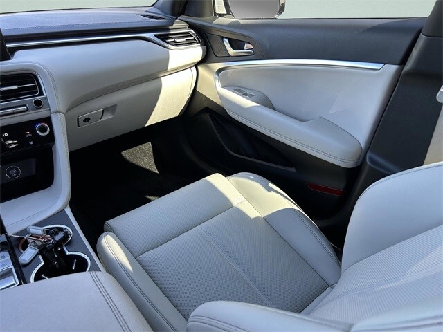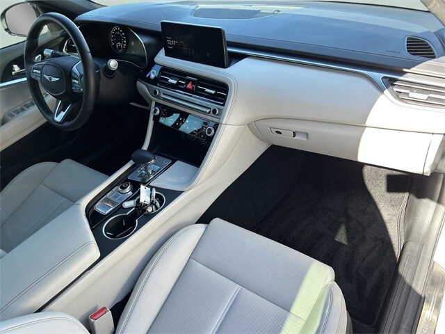 This vehicle comes equipped with Option Group 01, Genesis Certified, 4-Wheel Disc Brakes, 6 Speakers, ABS brakes, Air Conditioning, Alloy wheels, AM/FM radio: SiriusXM, Android Auto & Apple CarPlay, Anti-whiplash front head restraints, Auto High-beam Headlights, Auto-dimming Rear-View mirror, Automatic temperature control, Brake assist, Bumpers: body-color, Delay-off headlights, Driver door bin, Driver vanity mirror, Dual front impact airbags, Dual front side impact airbags, Electronic Stability Control, Emergency communication system: Genesis Connected Services, Exterior Parking Camera Rear, First Aid Kit, Four wheel independent suspension, Front anti-roll bar, Front Bucket Seats, Front Center Armrest, Front dual zone A/C, Front reading lights, Fully automatic headlights, Garage door transmitter: HomeLink, Heated door mirrors, Heated front seats, Heated Multi-Adjustable Front Bucket Seats, Illuminated entry, Knee airbag, Leather steering wheel, Leatherette Seating Surfaces, Low tire pressure warning, Mudguards, Navigation System, Occupant sensing airbag, Outside temperature display, Overhead airbag, Overhead console, Panic alarm, Passenger door bin, Passenger vanity mirror, Power door mirrors, Power driver seat, Power passenger seat, Power steering, Power windows, Radio: AM/FM/SiriusXM/HD Audio System, Rear anti-roll bar, Rear reading lights, Rear seat center armrest, Rear side impact airbag, Rear window defroster, Remote keyless entry, Reversible Cargo Tray, Roadside Assistance, Security system, Speed control, Speed-Sensitive Wipers, Split folding rear seat, Steering wheel mounted audio controls, Tachometer, Telescoping steering wheel, Traction control, Trip computer, Turn signal indicator mirrors, Variably intermittent wipers, and Wheels: 19" x 8.0J Fr & 19" x 8.5J Rr Alloy . Odometer is 569 miles below market average! 21/29 City/Highway MPG