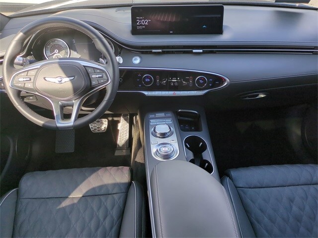 This vehicle comes equipped with Sport Advanced Package, Genesis Certified, 4-Wheel Disc Brakes, 9 Speakers, ABS brakes, Adaptive suspension, Air Conditioning, Alloy wheels, AM/FM radio: SiriusXM, Android Auto & Apple CarPlay, Anti-whiplash front head restraints, Auto High-beam Headlights, Auto-dimming door mirrors, Auto-dimming Rear-View mirror, Automatic temperature control, Brake assist, Bumpers: body-color, Cargo Cover, Cargo Net, Delay-off headlights, Driver door bin, Driver vanity mirror, Dual front impact airbags, Dual front side impact airbags, Electronic Stability Control, Emergency communication system: Genesis Connected Services, Exterior Parking Camera Rear, First Aid Kit, Four wheel independent suspension, Front anti-roll bar, Front Bucket Seats, Front Center Armrest w/Storage, Front dual zone A/C, Front reading lights, Fully automatic headlights, Garage door transmitter: HomeLink, Heated & Ventilated Front Bucket Seats, Heated door mirrors, Heated front seats, Heated steering wheel, Illuminated entry, Knee airbag, Leather Seating Surfaces w/Mesh Insert, Leather steering wheel, Low tire pressure warning, Memory seat, Navigation System, Occupant sensing airbag, Outside temperature display, Overhead airbag, Overhead console, Panic alarm, Passenger door bin, Passenger vanity mirror, Power door mirrors, Power driver seat, Power Liftgate, Power moonroof, Power passenger seat, Power steering, Power windows, Radio: 14.5" Navigation System w/AM/FM/HD Radio, Rain sensing wipers, Rear anti-roll bar, Rear Parking Sensors, Rear reading lights, Rear seat center armrest, Rear window defroster, Rear window wiper, Remote keyless entry, Reversible Cargo Tray, Roof Rack Cross Bars, Security system, Speed control, Speed-sensing steering, Speed-Sensitive Wipers, Split folding rear seat, Spoiler, Steering wheel memory, Steering wheel mounted audio controls, Tachometer, Telescoping steering wheel, Traction control, Trip computer, Turn signal indicator mirrors, Variably intermittent wipers, Ventilated front seats, and Wheels: 19" Dark Hyper Silver Sport Alloy .