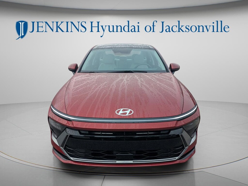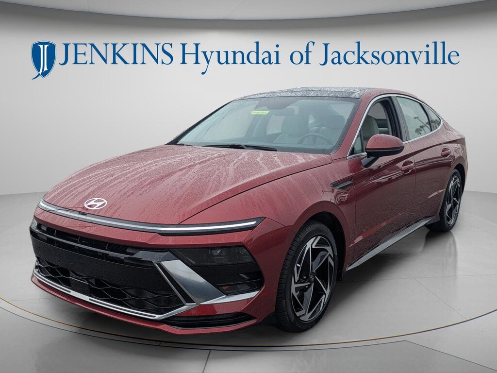 CARFAX One-Owner. Clean CARFAX. This 2024 Hyundai Sonata SEL in Ultimate red features Convenience Package (12.3" LCD Instrument Cluster, 18" x 7.5J Aluminum Alloy Wheels, Auto-Dimming Mirror, Hyundai Digital Key 2.0 Premium, Leather-Wrapped Steering Wheel, LED Interior Lights, Option Group 02, Panoramic Sunroof, Radio: AM/FM/HD/SiriusXM/Navigation, and Wireless Device Charging), 17" x 7.0J Aluminum Alloy Wheels, 4-Wheel Disc Brakes, 6 Speakers, ABS brakes, Air Conditioning, Alloy wheels, AM/FM radio: SiriusXM, Apple CarPlay & Android Auto, Auto High-beam Headlights, Automatic temperature control, Brake assist, Bumpers: body-color, Carpeted Floor Mats, Delay-off headlights, Driver door bin, Driver vanity mirror, Dual front impact airbags, Dual front side impact airbags, Electronic Stability Control, Emergency communication system: Bluelink, Exterior Parking Camera Rear, Four wheel independent suspension, Front anti-roll bar, Front Bucket Seats, Front Center Armrest, Front dual zone A/C, Front reading lights, Fully automatic headlights, Heated door mirrors, Heated Front Bucket Seats, Heated front seats, Illuminated entry, Knee airbag, Low tire pressure warning, Occupant sensing airbag, Outside temperature display, Overhead airbag, Overhead console, Panic alarm, Passenger door bin, Passenger vanity mirror, Power door mirrors, Power driver seat, Power steering, Power windows, Premium Cloth Seating Surfaces, Radio data system, Radio: AM/FM/HD/SiriusXM, Rear anti-roll bar, Rear seat center armrest, Rear side impact airbag, Rear window defroster, Remote keyless entry, Security system, Speed control, Speed-sensing steering, Speed-Sensitive Wipers, Split folding rear seat, Steering wheel mounted audio controls, Tachometer, Telescoping steering wheel, Tilt steering wheel, Traction control, Trip computer, and Variably intermittent wipers . Visit our showroom 24/7 at Jenkinshyundaiofjacksonville or call 904-420-3100. FWD