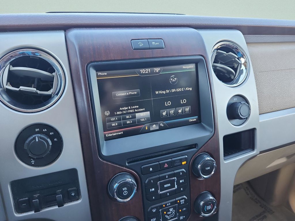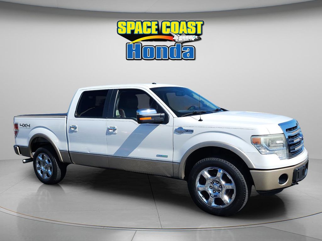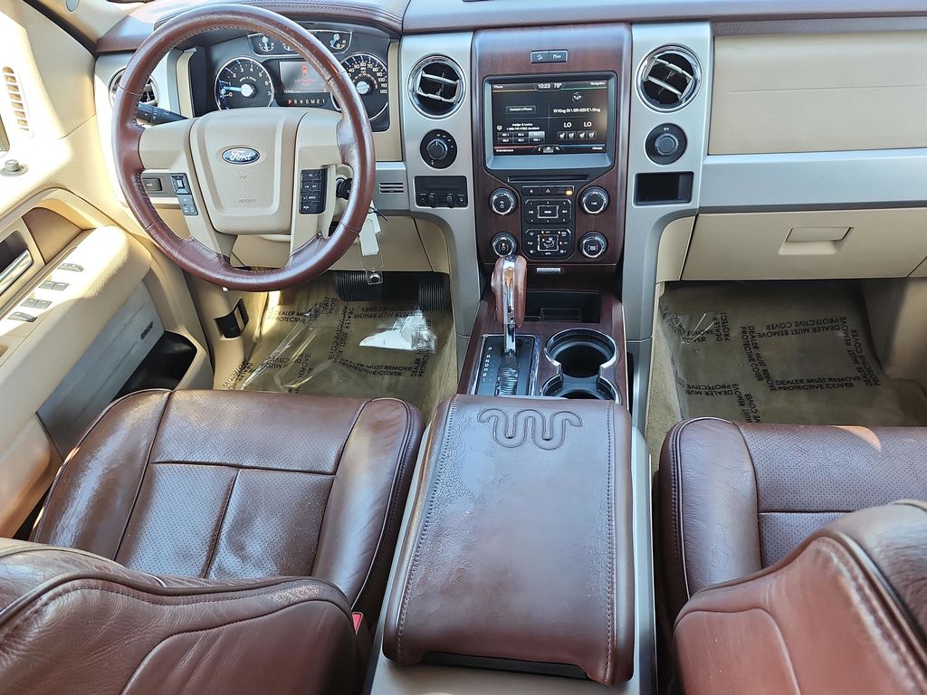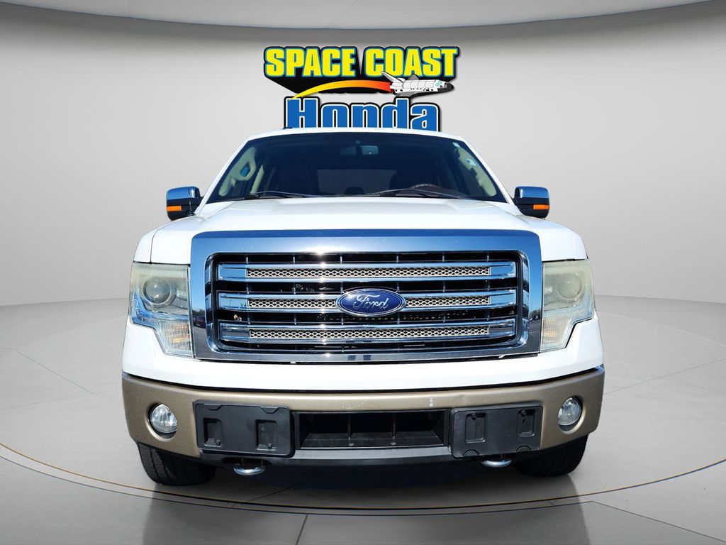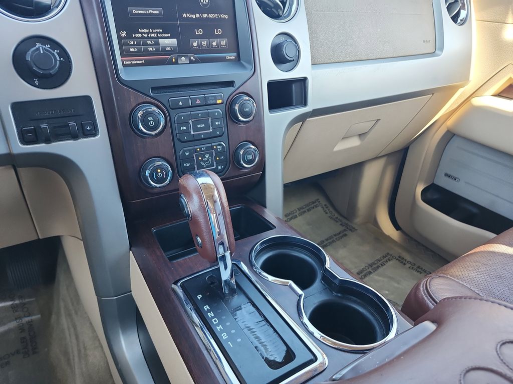 This vehicle comes equipped with Equipment Group 600A, GVWR: 7,350 lbs Payload Package, King Ranch Chrome Package (20" Chrome-Clad Aluminum Wheels, 6" Chrome Angular Step Bars, Body-Color Door Handles w/Chrome Strap, Chrome Grille Surround, and PowerFold Heated Side Mirrors w/Chrome Skull Caps), King Ranch Luxury Package (High-Intensity Discharge Headlamps, Navigation, Overhead Console w/Single Storage Bin, Power Moonroof, and Tailgate Step), Off-Road Package (4x4 Off-Road Decal, Electronic Locking w/3.55 Axle Ratio, Front & Rear Off-Road Tuned Shock Absorbers, and Hill Descent Control), 4WD, 10 Speakers, Exterior Parking Camera Rear, Front dual zone A/C, Front fog lights, Fully automatic headlights, Garage door transmitter, Heated front seats, Heated rear seats, King Ranch Chaparral Leather Bucket Seats, Memory seat, Pedal memory, Premium audio system: Sony, Rear Parking Sensors, Rear window defroster, Security system, SiriusXM Satellite Radio, Speed-sensing steering, Steering wheel memory, Steering wheel mounted audio controls, SYNC Voice Activated Communication & Entertainment, SYNC w/MyFord Touch & SYNC Services, Traction control, Ventilated front seats, 18" 7-Spoke Aluminum w/King Ranch Logo Wheels, 4-Wheel Disc Brakes, ABS brakes, Adjustable pedals, Air Conditioning, Alloy wheels, AM/FM radio: SiriusXM, Auto tilt-away steering wheel, Auto-dimming door mirrors, Auto-dimming Rear-View mirror, Automatic temperature control, CD player, Compass, Delay-off headlights, Driver door bin, Driver vanity mirror, Dual front impact airbags, Dual front side impact airbags, DVD-Audio, Electronic Stability Control, Front anti-roll bar, Front Bucket Seats, Front Center Armrest, Front License Plate Bracket, Front reading lights, Front wheel independent suspension, Heated door mirrors, Illuminated entry, Leather steering wheel, Low tire pressure warning, Occupant sensing airbag, Outside temperature display, Overhead airbag, Overhead console, Panic alarm, Passenger door bin, Passenger vanity mirror, Power door mirrors, Power driver seat, Power passenger seat, Power steering, Power windows, Radio data system, Radio: Sony Single-CD w/HD, Rear
