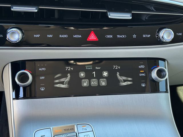 This vehicle comes equipped with Option Group 01, 4-Wheel Disc Brakes, 9 Speakers, ABS brakes, Air Conditioning, Alloy wheels, AM/FM radio: SiriusXM, Android Auto & Apple CarPlay, Anti-whiplash front head restraints, Auto High-beam Headlights, Auto-dimming door mirrors, Auto-dimming Rear-View mirror, Automatic temperature control, Brake assist, Bumpers: body-color, Cargo Cover, Cargo Net, Cargo Tray, Delay-off headlights, Driver door bin, Driver vanity mirror, Dual front impact airbags, Dual front side impact airbags, Electronic Stability Control, Emergency communication system: Genesis Connected Services, Exterior Parking Camera Rear, First Aid Kit, Four wheel independent suspension, Front and Rear Mudguards, Front anti-roll bar, Front Bucket Seats, Front Center Armrest w/Storage, Front dual zone A/C, Front reading lights, Fully automatic headlights, Garage door transmitter: HomeLink, Heated door mirrors, Heated Front Bucket Seats, Heated front seats, Illuminated entry, Knee airbag, Leather steering wheel, Leatherette Seating Surfaces, Low tire pressure warning, Memory seat, Navigation System, Occupant sensing airbag, Outside temperature display, Overhead airbag, Overhead console, Panic alarm, Passenger door bin, Passenger vanity mirror, Power door mirrors, Power driver seat, Power Liftgate, Power moonroof, Power passenger seat, Power steering, Power windows, Radio: 14.5" Navigation System with AM/FM/HD, Rain sensing wipers, Rear anti-roll bar, Rear reading lights, Rear seat center armrest, Rear window defroster, Rear window wiper, Remote keyless entry, Security system, Speed control, Speed-sensing steering, Speed-Sensitive Wipers, Split folding rear seat, Spoiler, Steering wheel memory, Steering wheel mounted audio controls, Tachometer, Telescoping steering wheel, Tilt steering wheel, Traction control, Trip computer, Turn signal indicator mirrors, Variably intermittent wipers, and Wheels: 19" Light Hyper Silver Alloy . Odometer is 1085 miles below market average! 20/28 City/Highway MPG