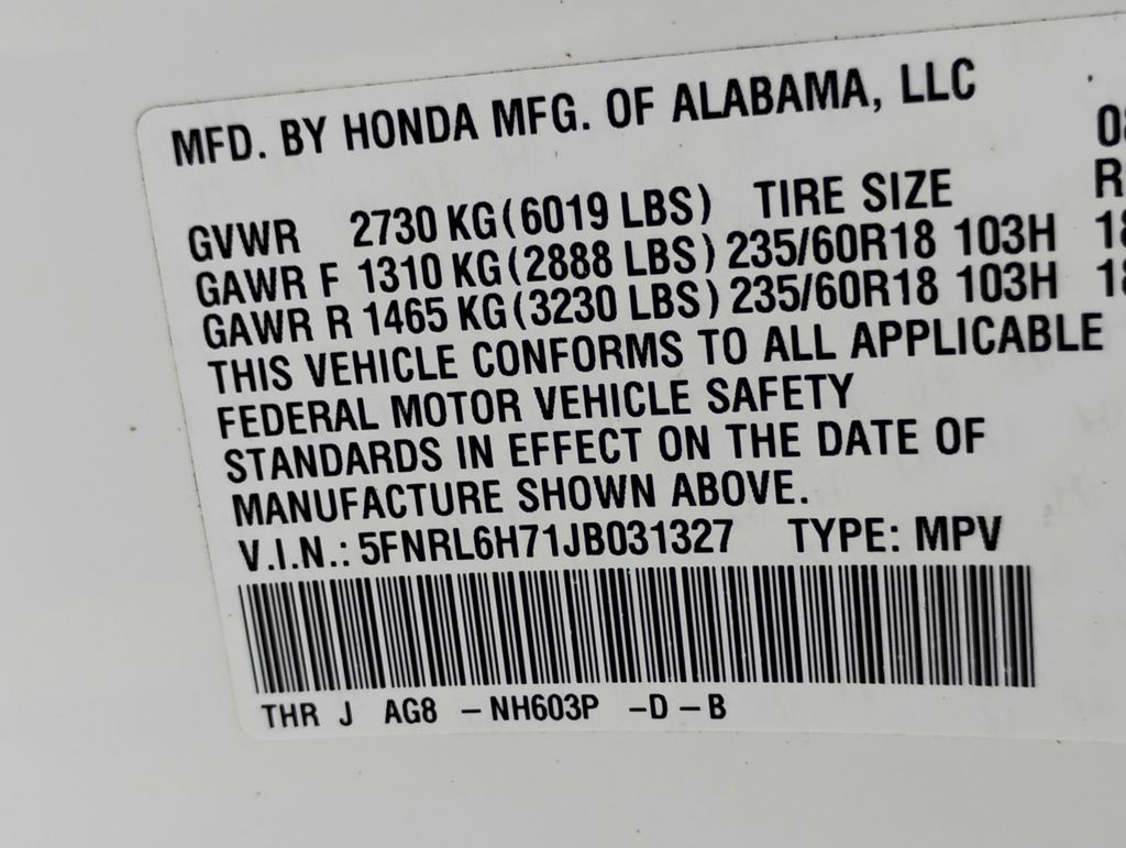 - 5FNRL6H71JB031327