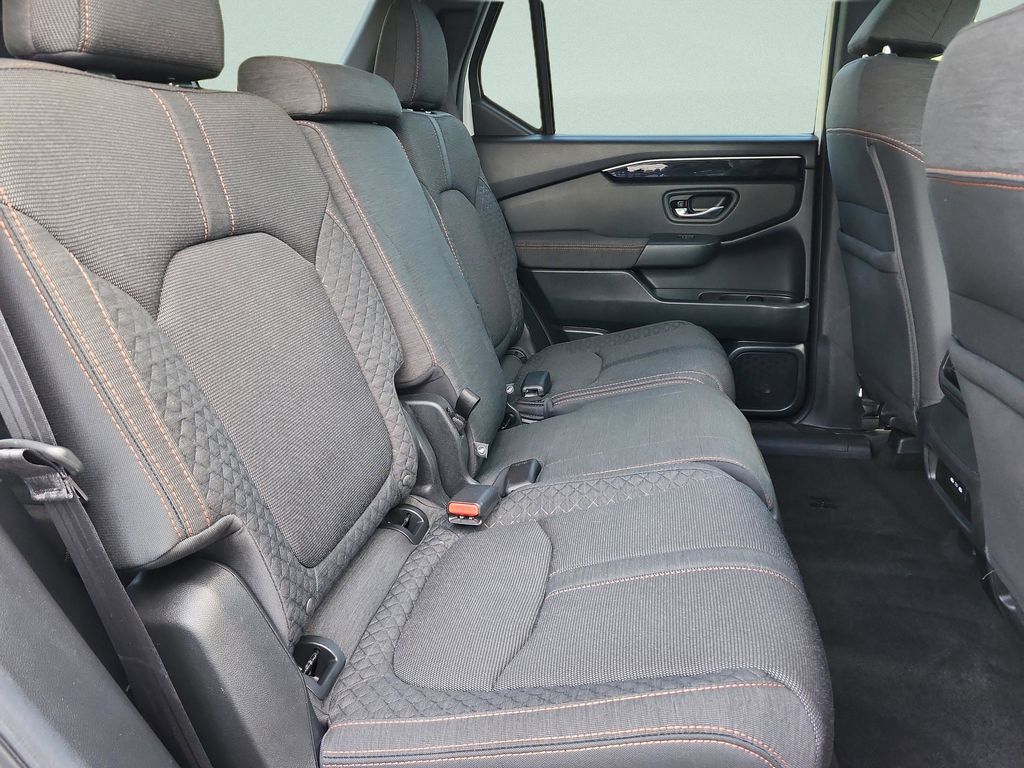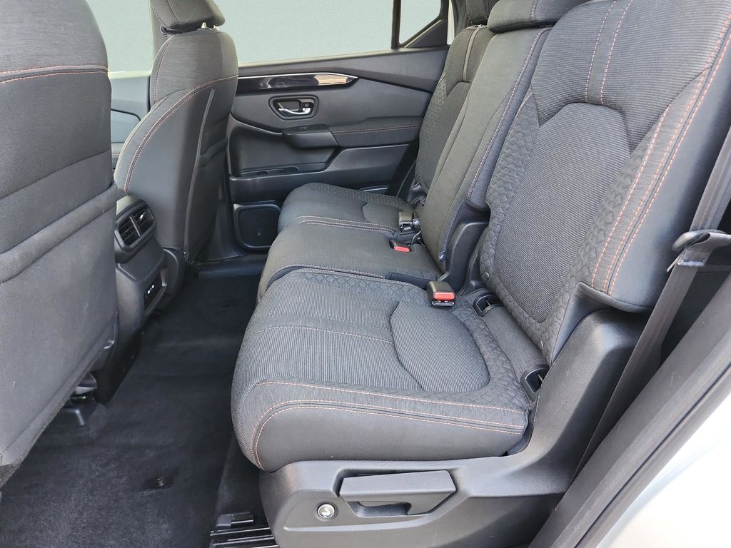 This vehicle comes equipped with Certified Select Certified, 3rd row seats: split-bench, 4-Wheel Disc Brakes, 7 Speakers, ABS brakes, Adaptive Cruise Control: Adaptive Cruise Control (ACC) with Low-Speed Follow, Apple CarPlay/Android Auto, Auto High-beam Headlights, Blind Spot Information (BSI) System warning, Brake assist, Dual front impact airbags, Dual front side impact airbags, Electronic Stability Control, Exterior Parking Camera Rear, Four wheel independent suspension, Front dual zone A/C, Front fog lights, Fully automatic headlights, Heated Front Bucket Seats, Lane departure: Lane Keeping Assist System (LKAS) active, Occupant sensing airbag, Power driver seat, Radio: 240-Watt Audio System, Reclining 3rd row seat, Security system, Speed-sensing steering, Speed-Sensitive Wipers, Steering wheel mounted audio controls, Traction control, Wheels: 20" Shark Gray with Black Lug Nuts, 4.167 Axle Ratio, Air Conditioning, Alloy wheels, Automatic temperature control, Bumpers: body-color, Cloth Seat Trim, Delay-off headlights, Driver door bin, Driver vanity mirror, Emergency communication system: HondaLink Assist, Front anti-roll bar, Front Bucket Seats, Front Center Armrest, Front reading lights, Heated front seats, Illuminated entry, Knee airbag, Low tire pressure warning, Outside temperature display, Overhead airbag, Overhead console, Panic alarm, Passenger door bin, Passenger vanity mirror, Power door mirrors, Power passenger seat, Power steering, Power windows, Radio data system, Rear air conditioning, Rear anti-roll bar, Rear reading lights, Rear seat center armrest, Rear window defroster, Rear window wiper, Remote keyless entry, Speed control, Split folding rear seat, Spoiler, Tachometer, Telescoping steering wheel, Tilt steering wheel, Trip computer, and Variably intermittent wipers . The price does not include tax, tag, license, an electronic filing fee of $449.00**, a private tag agency fee of $199.00**, and a predelivery service charge of $1199.00** **This charge represents costs and profit to the dealer for items such as inspect