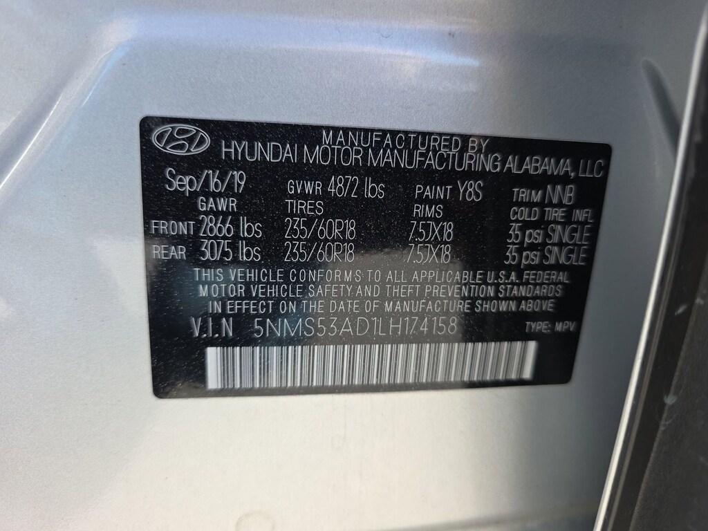 Symphony Silver 2020 Hyundai Santa Fe Limited FWD 8-Speed Automatic with SHIFTRONIC 2.4L I4 DGI DOHC 16V LEV3-ULEV70 185hp Black Leather.