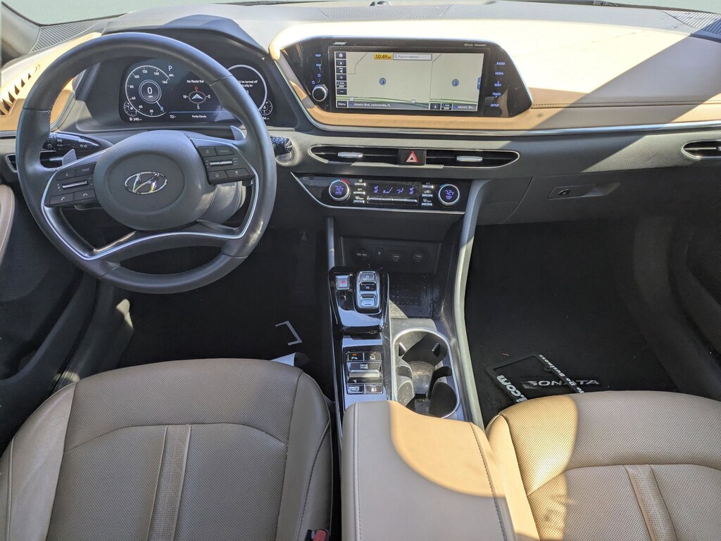The price does not include tax, tag, license, an electronic filing fee of $449.00**, a private tag agency fee of $199.00**, and a predelivery service charge of $1199.00** **This charge represents costs and profit to the dealer for items such as inspecting, cleaning, and adjusting vehicles, as well as preparing documents related to the sale. * EPA-estimate metric: these are contingent on ideal conditions within a lab. Real-world situations such as carrying passengers or cargo, using climate control, driving style, and ambient temperatures can affect actual metrics. 27/36 City/Highway MPG CARFAX One-Owner. This 2020 Hyundai Sonata Limited in Portofino Gray features Blue Link Connected Care & Remote Package, Option Group 01, 12 Speakers, 4-Wheel Disc Brakes, ABS brakes, Air Conditioning, Alloy wheels, AM/FM radio: SiriusXM, Apple CarPlay & Android Auto, Auto High-beam Headlights, Auto-dimming Rear-View mirror, Automatic temperature control, Bose Premium Audio, Brake assist, Bumpers: body-color, Carpeted Floor Mats, Delay-off headlights, Driver door bin, Driver vanity mirror, Dual front impact airbags, Dual front side impact airbags, Electronic Stability Control, Emergency communication system: Blue Link Connected Care (3-year subscription), Four wheel independent suspension, Front anti-roll bar, Front Bucket Seats, Front Center Armrest, Front dual zone A/C, Front reading lights, Fully automatic headlights, Garage door transmitter: HomeLink, Heads-Up Display, Heated door mirrors, Heated front seats, Heated steering wheel, Heated/Ventilated Front Bucket Seats, Illuminated entry, Knee airbag, Leather Seating Surfaces, Low tire pressure warning, Memory seat, Navigation System, Occupant sensing airbag, Outside temperature display, Overhead airbag, Overhead console, Panic alarm, Passenger door bin, Passenger vanity mirror, Power door mirrors, Power driver seat, Power moonroof, Power passenger seat, Power steering, Power windows, Radio data system, Radio: AM/FM/MP3/HD/SiriusXM Display Audio w/Nav, Rain sensing wipers, Rear anti-roll bar, Rear Bumper Applique, Rear seat center armrest, Rear side impact airbag, Rear window defroster, Remote keyless entry, Reversible Cargo Tray, Security system, Speed control, Speed-sensing steering, Speed-Sensitive Wipers, Split folding rear seat, Steering wheel mounted audio controls, Tachometer, Telescoping steering wheel, Tilt steering wheel, Traction control, Trip computer, Turn signal indicator mirrors, Variably intermittent wipers, Ventilated front seats, Wheels: 18 x 7.5J Machine/Argent Finish Alum Alloy, and Wireless Phone Charging . Visit our showroom 24/7 at Jenkinshyundaiofjacksonville or call 904-420-3100. FWD
