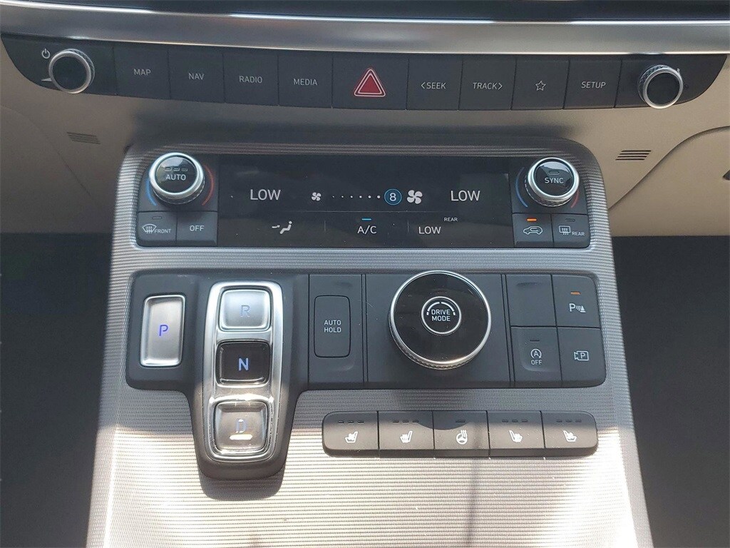 This vehicle comes equipped with Option Group 01, 12 Speakers, 3.510 Axle Ratio, 3rd row seats: split-bench, 4-Wheel Disc Brakes, ABS brakes, Air Conditioning, Alloy wheels, AM/FM radio: SiriusXM, Apple CarPlay & Android Auto, Auto High-beam Headlights, Auto-dimming door mirrors, Auto-dimming Rear-View mirror, Auto-leveling suspension, Automatic temperature control, Brake assist, Bumpers: body-color, Cargo Cover/Screen, Cargo Net, Cargo Tray, Carpeted Floor Mats, Compass, Delay-off headlights, Driver door bin, Driver vanity mirror, Dual front impact airbags, Dual front side impact airbags, Electronic Stability Control, Emergency communication system: Blue Link Connected Car Service (3-year complimentary subscription), Exterior Parking Camera Rear, Four wheel independent suspension, Front anti-roll bar, Front Bucket Seats, Front Center Armrest, Front dual zone A/C, Front reading lights, Fully automatic headlights, Garage door transmitter: HomeLink, harman/kardon® Speakers, Heads-Up Display, Heated & Ventilated Front Bucket Seats, Heated door mirrors, Heated front seats, Heated rear seats, Heated steering wheel, Illuminated entry, Knee airbag, Low tire pressure warning, Memory seat, Navigation System, Occupant sensing airbag, Outside temperature display, Overhead airbag, Overhead console, Panic alarm, Passenger door bin, Passenger vanity mirror, Power door mirrors, Power driver seat, Power Liftgate, Power moonroof, Power passenger seat, Power steering, Power windows, Premium Nappa Leather Seat Trim, Radio data system, Radio: AM/FM/MP3 Premium Audio System, Rain sensing wipers, Rear air conditioning, Rear anti-roll bar, Rear audio controls, Rear Bumper Applique, Rear reading lights, Rear side impact airbag, Rear window defroster, Rear window wiper, Reclining 3rd row seat, Remote keyless entry, Security system, Speed control, Speed-sensing steering, Splash Trim, Split folding rear seat, Spoiler, Steering wheel mounted audio controls, Tachometer, Telescoping steering wheel, Tilt steering wheel, Traction control, Trip computer, Turn signal indicator mirrors, Variably intermittent wipers, Ventilated front seats, Ventilated rear seats, and Wheels: 20" x 7.5J Calligraphy Exclusive Alloy .