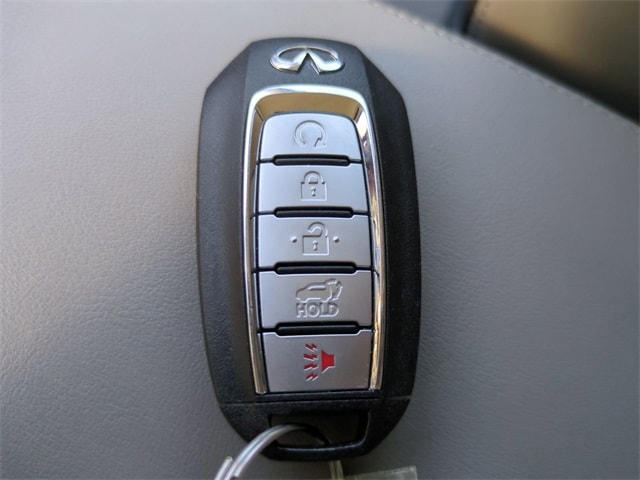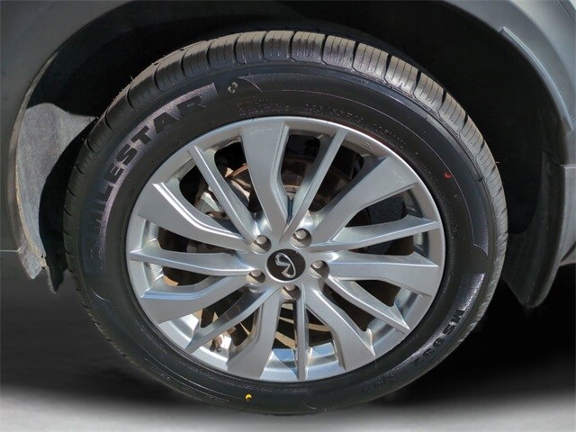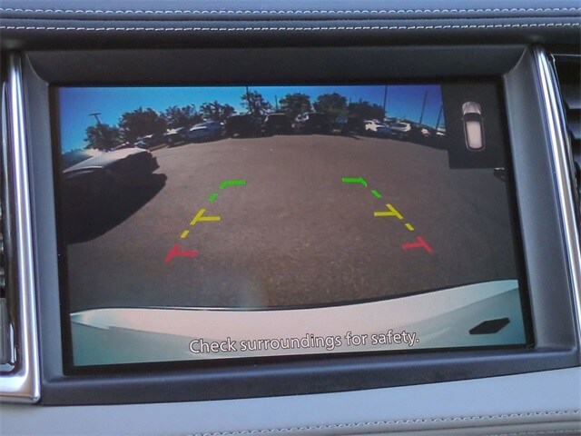 This vehicle comes equipped with Accent Package, 4-Wheel Disc Brakes, 5.846 Axle Ratio, 6 Speakers, ABS brakes, Air Conditioning, Alloy wheels, AM/FM radio: SiriusXM, Auto High-beam Headlights, Auto-dimming Rear-View mirror, Automatic temperature control, Bose 12-Speaker Premium Audio, Brake assist, Bumpers: body-color, CD player, Delay-off headlights, Driver door bin, Driver vanity mirror, Dual front impact airbags, Dual front side impact airbags, Electronic Stability Control, Emergency communication system: INFINITI InTouch (1-year complimentary trial), Exterior Parking Camera Rear, Floor Mats, Four wheel independent suspension, Front anti-roll bar, Front Bucket Seats, Front Center Armrest, Front dual zone A/C, Front reading lights, Fully automatic headlights, Garage door transmitter: HomeLink, Heated door mirrors, Heated Front Bucket Seats, Heated front seats, Illuminated entry, Illuminated Kick Plates, Knee airbag, Leather Shift Knob, Leather steering wheel, Leather-Appointed Seat Trim, Literature Kit, Low tire pressure warning, Memory seat, Occupant sensing airbag, Outside temperature display, Overhead airbag, Overhead console, Panic alarm, Passenger door bin, Passenger vanity mirror, Power door mirrors, Power driver seat, Power Liftgate, Power moonroof, Power passenger seat, Power steering, Power windows, Radio data system, Radio: HD Audio System, Rear anti-roll bar, Rear Parking Sensors, Rear reading lights, Rear seat center armrest, Rear side impact airbag, Rear window defroster, Rear window wiper, Remote keyless entry, Security system, Speed control, Speed-sensing steering, Speed-Sensitive Wipers, Splash Guards (Set of 4), Split folding rear seat, Spoiler, Steering wheel mounted audio controls, Tachometer, Telescoping steering wheel, Tilt steering wheel, Traction control, Trip computer, Turn signal indicator mirrors, USB Charging Cable Set, Variably intermittent wipers, Welcome Lighting w/Logo, and Wheels: 19" Silver Painted Aluminum Alloy .