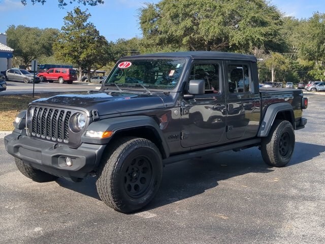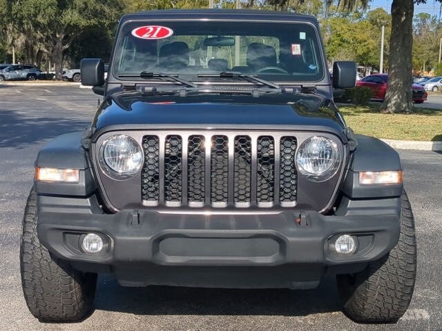 The price does not include tax, tag, license, an electronic filing fee of $449.00**, a private tag agency fee of $199.00**, and a predelivery service charge of $1199.00** **This charge represents costs and profit to the dealer for items such as inspecting, cleaning, and adjusting vehicles, as well as preparing documents related to the sale. * EPA-estimate metric: these are contingent on ideal conditions within a lab. Real-world situations such as carrying passengers or cargo, using climate control, driving style, and ambient temperatures can affect actual metrics. 17/22 City/Highway MPG TEXT OR CALL 352-598-9241 NOW TO GET IN TOUCH WITH GAGE GIRTON IN SALES, TEXT OR CALL 407-715-4652 NOW TO GET IN TOUCH WITH PEDRO CARO IN SALES *SE HABLA ESPAN OL*, 240 Amp Alternator, 4.10 Rear Axle Ratio, 8 Speakers, AM/FM radio, Anti-Lock 4-Wheel Disc Heavy Duty Brakes, Anti-Spin Differential Rear Axle, Black Molded-In-Color Fender Flares (2-Piece), Class IV Hitch Receiver, Dana M210 Wide Front Axle, Dana M220 Wide Rear Axle, Daytime Running Lamp System, GVWR: 6,250 lbs w/Max Tow Package, Heavy-Duty Engine Cooling, Max Tow Package w/4.10 Axle Ratio, Quick Order Package 24B, Radio data system, Radio: Uconnect 3 w/5" Display, Trailer Hitch Zoom. Granite Crystal Metallic Clearcoat 2021 Jeep Gladiator Sport 4WD 8-Speed Automatic 3.6L V6 24V VVT