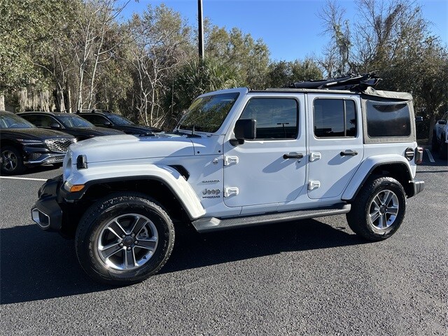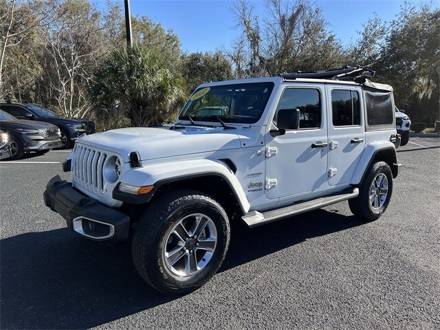The price does not include tax, tag, license, an electronic filing fee of $449.00**, a private tag agency fee of $199.00**, and a predelivery service charge of $1199.00** **This charge represents costs and profit to the dealer for items such as inspecting, cleaning, and adjusting vehicles, as well as preparing documents related to the sale. * EPA-estimate metric: these are contingent on ideal conditions within a lab. Real-world situations such as carrying passengers or cargo, using climate control, driving style, and ambient temperatures can affect actual metrics. 21/24 City/Highway MPG NAVIGATION SYSTEM, ALLOY WHEELS, BACKUP CAMERA, BLUETOOTH, HEAT PACKAGE, LEATHER SEATS, MEMORY PACKAGE, POWER PACKAGE, REMOTE START, TOW PACKAGE, TECHNOLOGY PACKAGE. CARFAX One-Owner. Clean CARFAX. Recent Arrival! Odometer is 1800 miles below market average! Certified. Bright White Clearcoat 2022 Jeep Wrangler Unlimited Sahara 4WD 8-Speed Automatic 2.0L I4 DOHC