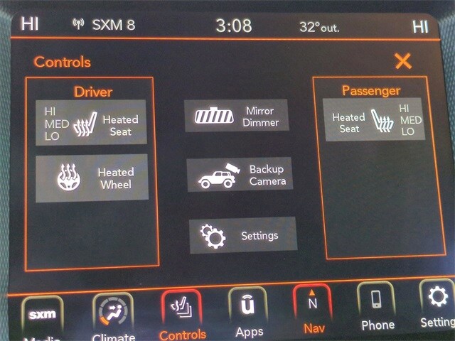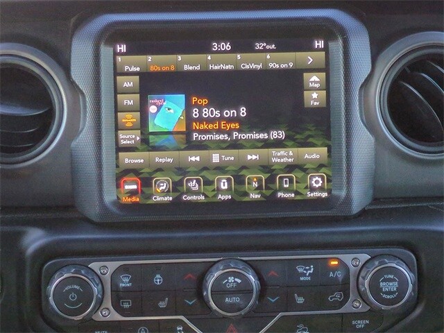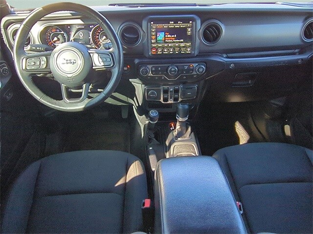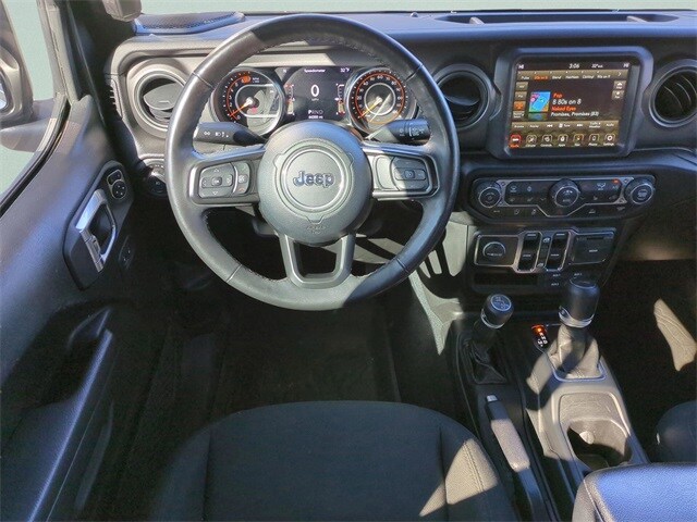 This vehicle comes equipped with 8.4" Radio & Premium Audio Group (1-Year SiriusXM Guardian Trial, 220 Amp Alternator, 4G LTE Wi-Fi Hot Spot, 5-Year SiriusXM Traffic Service, 5-Year SiriusXM Travel Link Service, 8.4" Touchscreen Display, Air Conditioning w/Auto Temperature Control, Air Filtering, Alpine Premium Audio System, Auto-Dimming Rear-View Mirror, Emergency/Assistance Call, GPS Navigation, HD Radio, Off-Road Info Pages, Radio: Uconnect 4C Nav w/8.4" Display, SiriusXM Radio Service, SiriusXM Satellite Radio, SiriusXM Traffic Plus, and SiriusXM Travel Link), Cold Weather Group (Heated Front Seats, Heated Steering Wheel, and Leather Wrapped Steering Wheel), Convenience Group (Universal Garage Door Opener), Quick Order Package 22S Sport S (Automatic Headlamps, Deep Tint Sunscreen Windows, Front 1-Touch Down Power Windows, Power Heated Mirrors, Remote Keyless Entry, Security Alarm, Speed Sensitive Power Locks, Sport S, Sun Visors w/Illuminated Vanity Mirrors, and Wheels: 17" x 7.5" Tech Silver Aluminum), Technology Group (2-Door Passive Entry, Front Door Locks and Cluster 7.0" TFT Color Display), Trailer Tow & HD Electrical Group (240 Amp Alternator, 7 & 4 Pin Wiring Harness, 700 Amp Maintenance Free Battery, Auxiliary Switches, and Class II Receiver Hitch), 110 MPH Vehicle Max Speed Calibration, 3.45 Rear Axle Ratio, 4-Wheel Disc Brakes, 8 Speakers, ABS brakes, Air Conditioning, AM/FM radio, Apple CarPlay/Android Auto, Aux Battery, Brake assist, Cloth Low-Back Bucket Seats, Compass, Delay-off headlights, Driver door bin, Driver vanity mirror, Dual front impact airbags, Dual front side impact airbags, Electronic Stability Control, Emergency communication system: SiriusXM Guardian, Engine Oil Cooler, Front anti-roll bar, Front Bucket Seats, Front Center Armrest w/Storage, Front fog lights, Front reading lights, Integrated roll-over protection, Jeep Trail Rated Kit, Low tire pressure warning, MOPAR All-Weather Floor Mats, MOPAR Hinge-Gate Reinforcement, Non-Lock Fuel Cap w/o Discriminator, Normal Duty Suspension, Occupant sensing airbag, Outside temperature display, ParkView Rear Back-Up Camera, Passenger door bin, Passenger vanity mirror, Power steering, Premium Black Sunrider Soft Top, Radio data system, Radio: Uconnect 4 w/7" Display, Rear anti-roll bar, Rear reading lights, Speed control, Split folding rear seat, Steering wheel mounted audio controls, Stop-Start Dual Battery System, Tachometer, Telescoping steering wheel, Tilt steering wheel, Traction control, Trip computer, Variably intermittent wipers, and Wheels: 17" x 7.5" Black Steel Styled .