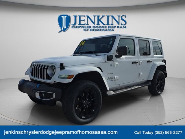 The price does not include tax, tag, license, an electronic filing fee of $449.00**, a private tag agency fee of $199.00**, and a predelivery service charge of $1199.00** **This charge represents costs and profit to the dealer for items such as inspecting, cleaning, and adjusting vehicles, as well as preparing documents related to the sale. * EPA-estimate metric: these are contingent on ideal conditions within a lab. Real-world situations such as carrying passengers or cargo, using climate control, driving style, and ambient temperatures can affect actual metrics. NAVIGATION SYSTEM, ALLOY WHEELS, BACKUP CAMERA, BLUETOOTH, CLIMATE PACKAGE, HEAT PACKAGE, MEMORY PACKAGE, REMOTE START, TOW PACKAGE, 2.0L I4 DOHC. CARFAX One-Owner. Recent Arrival! Odometer is 7176 miles below market average! Certified. Bright White Clearcoat 2024 Jeep Wrangler Sahara 4xe 4WD 8-Speed Automatic 2.0L I4 DOHC