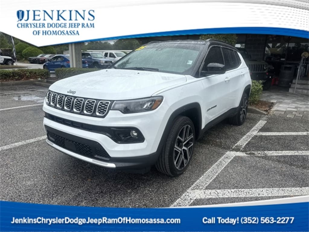 The price does not include tax, tag, license, an electronic filing fee of $449.00**, a private tag agency fee of $199.00**, and a predelivery service charge of $1199.00** **This charge represents costs and profit to the dealer for items such as inspecting, cleaning, and adjusting vehicles, as well as preparing documents related to the sale. * EPA-estimate metric: these are contingent on ideal conditions within a lab. Real-world situations such as carrying passengers or cargo, using climate control, driving style, and ambient temperatures can affect actual metrics. 24/32 City/Highway MPG 4WD. Clean CARFAX. Recent Arrival! Odometer is 15411 miles below market average! Bright White Clearcoat 2025 Jeep Compass Limited 4WD 8-Speed Automatic 2.0L I4 DOHC