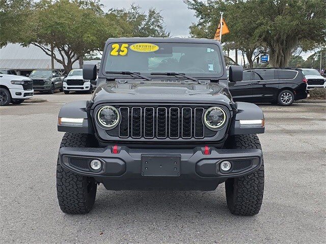 DECEMBER SAVINGS, END OF YEAR DEALS, GET THEM BEFORE THEY ARE GONE! The price does not include tax, tag, license, an electronic filing fee of $449.00**, a private tag agency fee of $199.00**, and a predelivery service charge of $1199.00** **This charge represents costs and profit to the dealer for items such as inspecting, cleaning, and adjusting vehicles, as well as preparing documents related to the sale. * EPA-estimate metric: these are contingent on ideal conditions within a lab. Real-world situations such as carrying passengers or cargo, using climate control, driving style, and ambient temperatures can affect actual metrics. 20/22 City/Highway MPG ALLOY WHEELS, BACKUP CAMERA, BLUETOOTH, CLIMATE PACKAGE, REMOTE START, TOW PACKAGE, TINTED WINDOWS. CARFAX One-Owner. Clean CARFAX. Recent Arrival! Black Clearcoat 2025 Jeep Wrangler Rubicon 4WD 8-Speed Automatic 2.0L I4 DOHC