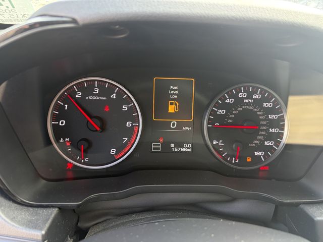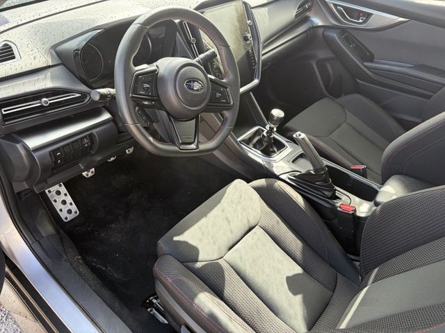 This vehicles comes equipped with Standard Model (6MT), 4-Wheel Disc Brakes, 6 Speakers, ABS brakes, Air Conditioning, Alloy wheels, AM/FM radio: SiriusXM, Auto High-beam Headlights, Auto-dimming Rear-View mirror, Automatic temperature control, Brake assist, Bumpers: body-color, Cloth Upholstery w/Red Stitching, Driver door bin, Driver vanity mirror, Dual front impact airbags, Dual front side impact airbags, Electronic Stability Control, Emergency communication system: STARLINK Safety and Security (Subscription Required), Exterior Parking Camera Rear, Four wheel independent suspension, Front anti-roll bar, Front Bucket Seats, Front Center Armrest, Front dual zone A/C, Front fog lights, Front reading lights, Fully automatic headlights, Heated door mirrors, Heated front seats, Illuminated entry, Knee airbag, Leather Shift Knob, Leather steering wheel, Low tire pressure warning, Occupant sensing airbag, Outside temperature display, Overhead airbag, Overhead console, Panic alarm, Passenger door bin, Passenger vanity mirror, Performance Design Heated Front Bucket Seats, Power door mirrors, Power steering, Power windows, Radio data system, Radio: Subaru STARLINK 11.6" Multimedia Plus Sys, Rear anti-roll bar, Rear seat center armrest, Rear window defroster, Remote keyless entry, Security system, Speed control, Speed-sensing steering, Split folding rear seat, Spoiler, Sport steering wheel, STARLINK/Apple CarPlay/Android Auto, Steering wheel mounted audio controls, Tachometer, Telescoping steering wheel, Tilt steering wheel, Traction control, Trip computer, Variably intermittent wipers, and Wheels: 18" x 8.5" Dark Gray Finish Alum Alloy . Recent Arrival! Odometer is 19817 miles below market average! 19/26 City/Highway MPG