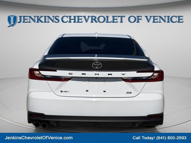 This vehicle comes equipped with 2.5L 4-Cylinder 16V DOHC, Black Cloth, ABS brakes, Active Cruise Control, Alloy wheels, Electronic Stability Control, Front dual zone A/C, Heated door mirrors, Illuminated entry, Low tire pressure warning, Remote keyless entry, Traction control, 4-Wheel Disc Brakes, 6 Speakers, Air Conditioning, AM/FM radio: SiriusXM, Apple CarPlay/Android Auto, Auto High-beam Headlights, Automatic temperature control, Brake assist, Bumpers: body-color, Delay-off headlights, Driver door bin, Driver vanity mirror, Dual front impact airbags, Dual front side impact airbags, Emergency communication system: Safety Connect (up to 10-year trial subscription), Exterior Parking Camera Rear, Four wheel independent suspension, Front anti-roll bar, Front Bucket Seats, Front Center Armrest, Front reading lights, Fully automatic headlights, Knee airbag, Leather Shift Knob, Leather steering wheel, Occupant sensing airbag, Outside temperature display, Overhead airbag, Overhead console, Panic alarm, Passenger door bin, Passenger vanity mirror, Power door mirrors, Power driver seat, Power steering, Power windows, Radio data system, Radio: Toyota Audio Multimedia w/8 Touchscreen, Rear anti-roll bar, Rear reading lights, Rear seat center armrest, Rear side impact airbag, Rear window defroster, Security system, SofTex & Fabric Seat Trim, Speed control, Speed-sensing steering, Split folding rear seat, Spoiler, Steering wheel mounted audio controls, Telescoping steering wheel, Tilt steering wheel, Trip computer, Turn signal indicator mirrors, Variably intermittent wipers, and Wheels: 18 Black-Finished Alloy . Jenkins Chevrolet of Homosassa proudly serving Homosassa, Spring Hill, Hernando, Crystal River, Beverly Hills, Inverness. Just a half hour North of Buccaneer Bay. Come see the large, expansive inventory of the Jenkins Auto Group. 2.5L 4-Cylinder 16V DOHC, Black Cloth, ABS brakes, Active Cruise Control, Alloy wheels, Electronic Stability Control, Front dual zone A/C, Heated door mirrors, Illuminated entry, Low tire pressure warning, Remote keyless entry, Traction control. Clean CARFAX. CARFAX One-Owner. Ice Cap 2025 Toyota Camry SE FWD eCVT 2.5L 4-Cylinder 16V DOHCRecent Arrival!The price does not include tax, tag, license, an electronic filing fee of $449.00**, a private tag agency fee of $199.00**, and a predelivery service charge of $1199.00** **This charge represents costs and profit to the dealer for items such as inspecting, cleaning, and adjusting vehicles, as well as preparing documents related to the sale. * EPA-estimate metric: these are contingent on ideal conditions within a lab. Real-world situations such as carrying passengers or cargo, using climate control, driving style, and ambient temperatures can affect actual metrics.