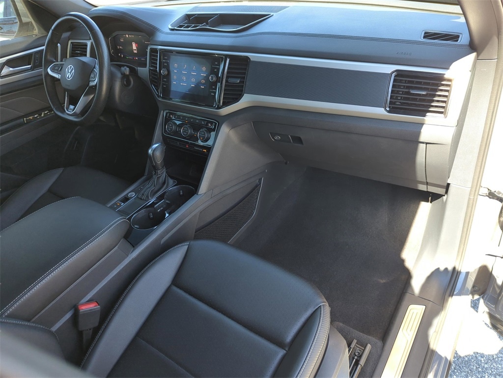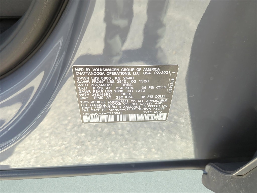 The price does not include tax, tag, license, an electronic filing fee of $449.00**, a private tag agency fee of $199.00**, and a predelivery service charge of $1199.00** **This charge represents costs and profit to the dealer for items such as inspecting, cleaning, and adjusting vehicles, as well as preparing documents related to the sale. * EPA-estimate metric: these are contingent on ideal conditions within a lab. Real-world situations such as carrying passengers or cargo, using climate control, driving style, and ambient temperatures can affect actual metrics. 18/23 City/Highway MPG Clean CarFax!, Atlas Cross Sport 3.6L V6 SEL R-Line, 4D Sport Utility, 3.6L VR6, 8-Speed Automatic with Tiptronic, Auto High-beam Headlights, Automatic temperature control, Brake assist, Delay-off headlights, Electronic Stability Control, Emergency communication system: VW Car-Net services (capabilities require enrollment or subscription), Front dual zone A/C, Front fog lights, Fully automatic headlights, Heated Comfort Front Bucket Seats, Memory seat, Navigation System, Panic alarm, Perforated V-Tex Leatherette Seating Surfaces, Power moonroof, Radio: MIB3 Discover Media w/8" Touchscreen Nav, Rain sensing wipers, Security system, Wheels: 21" Two-Tone Machined Alloy.