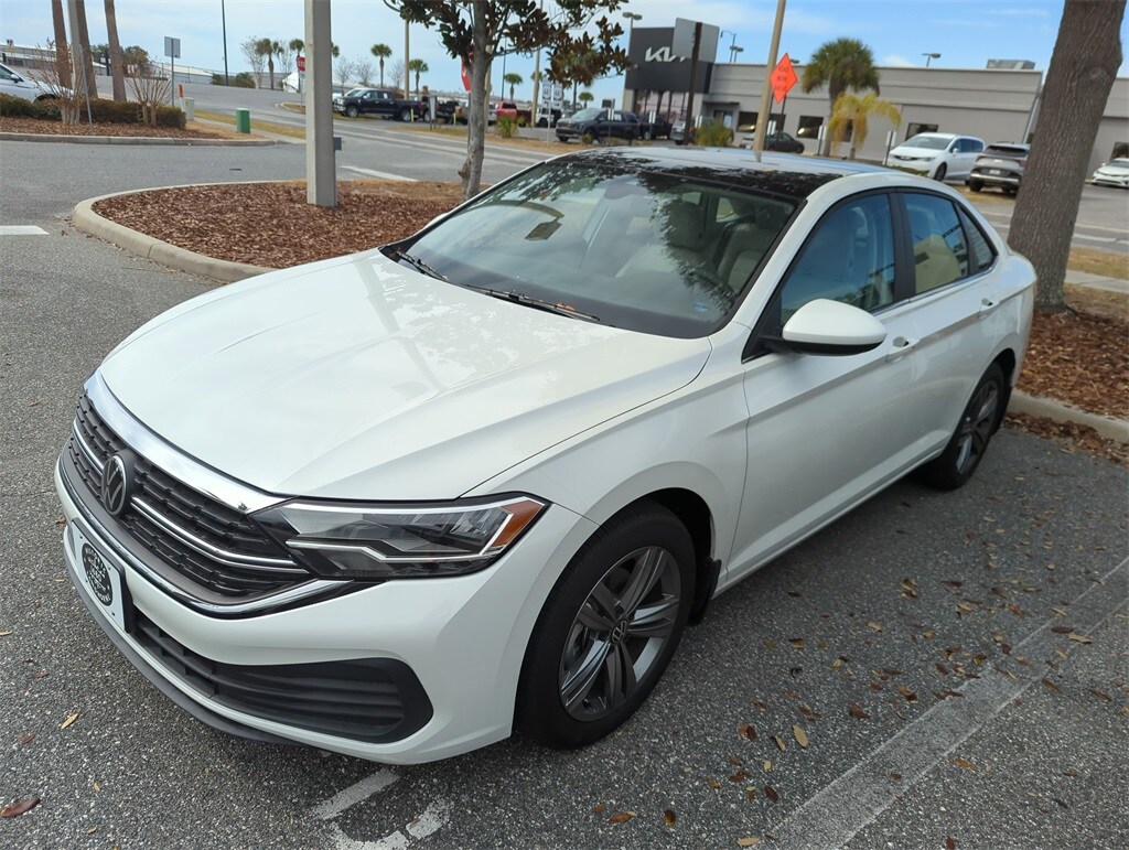 The price does not include tax, tag, license, an electronic filing fee of $449.00**, a private tag agency fee of $199.00**, and a predelivery service charge of $1199.00** **This charge represents costs and profit to the dealer for items such as inspecting, cleaning, and adjusting vehicles, as well as preparing documents related to the sale. * EPA-estimate metric: these are contingent on ideal conditions within a lab. Real-world situations such as carrying passengers or cargo, using climate control, driving style, and ambient temperatures can affect actual metrics. 29/40 City/Highway MPG One Owner!, Clean CarFax!, Jetta 1.5T SE, 4D Sedan, 1.5L I-4 DI DOHC Turbocharged, Opal White, Gray Artificial Leather, Automatic temperature control, Brake assist, Delay-off headlights, Electronic Stability Control, Emergency communication system: VW Car-Net Safe & Secure 5-year, Front dual zone A/C, Fully automatic headlights, Heated Front Seats, Panic alarm, Rain sensing wipers, Wheels: 17" Twin 5-Spoke Silver Painted Alloy.